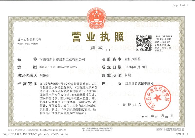 河南省新鄉市啟東工業有限公司始建于1987年,是專注研發、生產自動化儀器儀表(主要與壓力容器、鍋爐等容器配套使用)的廠家。主要產品有液位計(磁敏雙色型、磁翻柱型等)系列、烤包器熄火聯控裝置系列、壓力容器快開門安全聯鎖保護裝置系列、鍋爐報警器系列。二十多年來,公司產品暢銷國內并遠銷俄羅斯、蒙古與東南亞,深得廣大用戶的信賴和好評。我們多年來致力于自動化儀器儀表的研制生產,公司現具有完善的生產、試驗、檢測手段和設備。科技創新、誠信服務,是我們不變的經營理念,我們將以強有力的技術支持及售后竭誠為客戶提供良好的服務?! ?012年我公司成功研發了KCL系列烤包器熄火聯控裝置,并于2013年2月2日榮獲中華人民共和國國家知識產權局辦法的《實用新型**證書》<**號:2021202257735>該產品廣泛應用于唐鋼等大型鋼鐵企業,為烤包器安全作業提供了有力的保障?! ?002年我公司成功研發磁敏電子雙色液位計獨特的高亮度LED紅綠雙色顯示,獲得了專家的首肯和用戶的一致好評。在此基礎上我公司研發人員十年磨一劍,致力于XQFB-1防爆型磁敏雙色液位計的研發,于2013年12月27日由國家防爆電器產品質量監督檢驗中心檢驗合格并頒發防爆合格證書<編號:cnex19.0883>。該產品性能得到了充分的發揮,廣泛應用于含有Ⅱ類A·B級T1-T4組可燃氣體或蒸汽與空氣混合形成的爆炸性混合物的0區、1區危險場所。連接用戶DCS或PLC系統實現遠距離集中顯示和控制,從而實現節能、數字化管理。為用戶增加了一定的經濟效益和社會效益,。2014年公司成功申請了夢潤儀表的logo,新的品牌新的形象,夢潤儀表是啟東的LOGO, 歡迎新老用戶前來洽談合作?! ∥覀円蝗缂韧刈⒅乜蒲械耐度?,憑借產品的不斷更新、加大科技含量,進一步拓展市場。我們相信品質成就未來,以過硬質量、優惠價格、完善的售后服務熱忱歡迎廣大客戶來我司視察指導、洽談業務;精誠合作,共創輝煌!